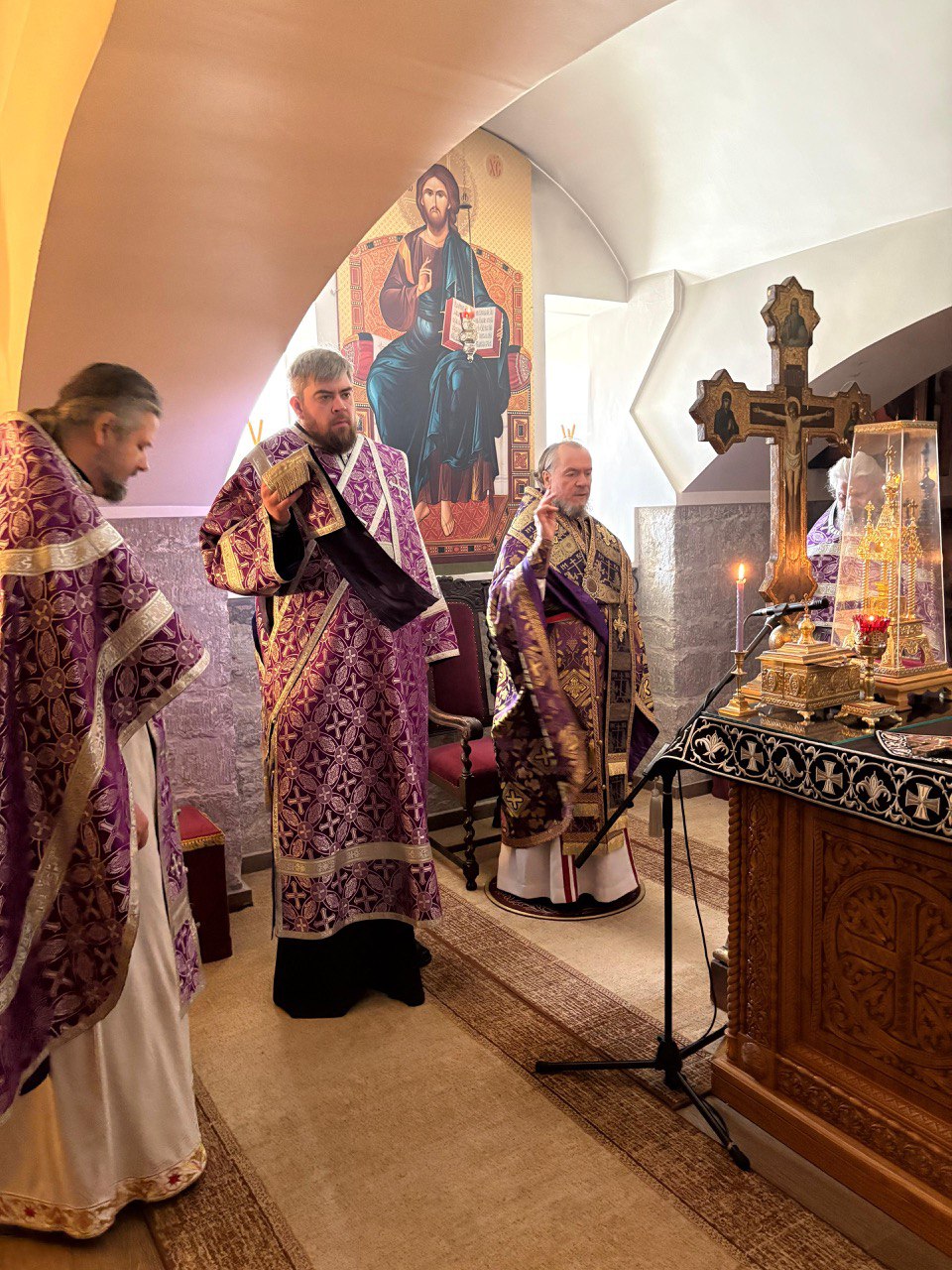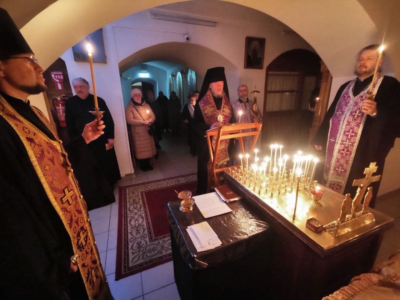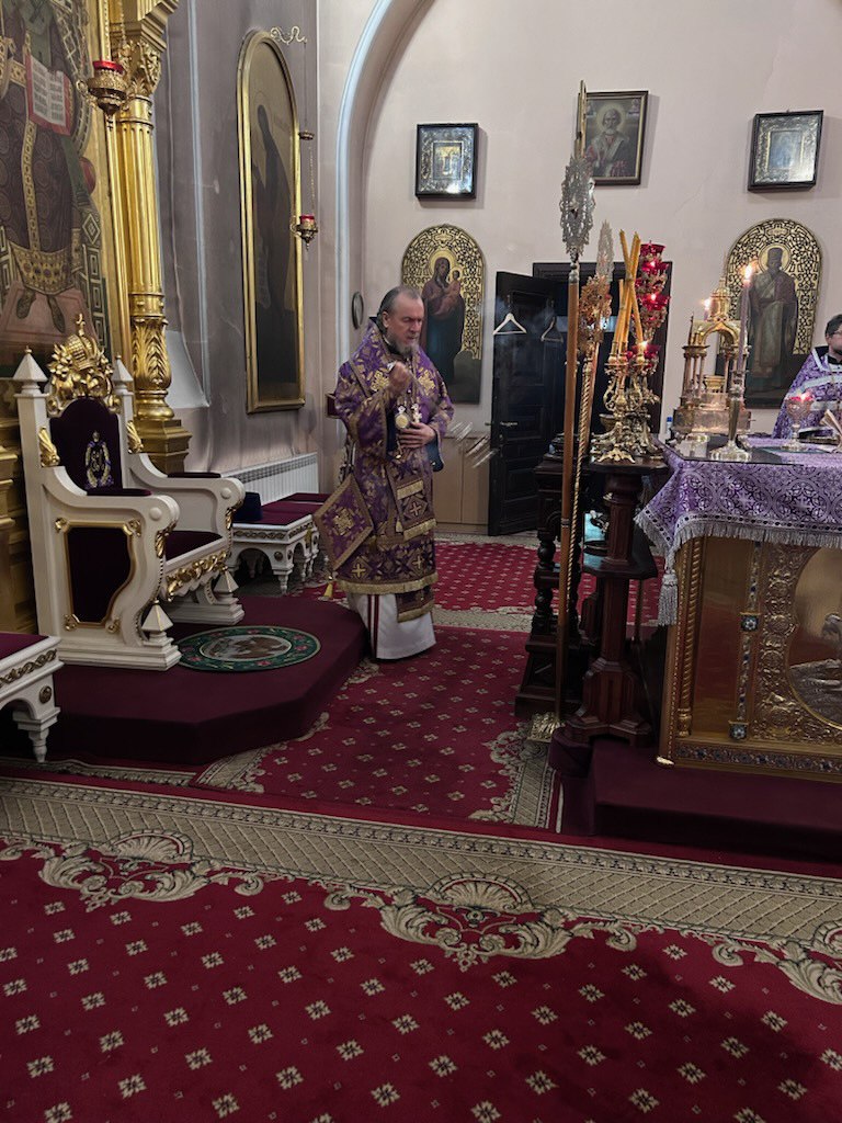 25 февраля 2026 года в храме Двенадцати Апостолов во вторник первой седмицы Великого поста было совершено Великое повечерие с чтением Великого покаянного канона преподобного Андрея Критского, которое совершил епископ Нарвский и Причудский Лазарь.